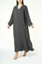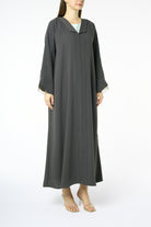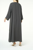 This abaya offers comfortable wear throughout the day and brings together modern simplicity with a touch of handcrafted detail.
