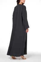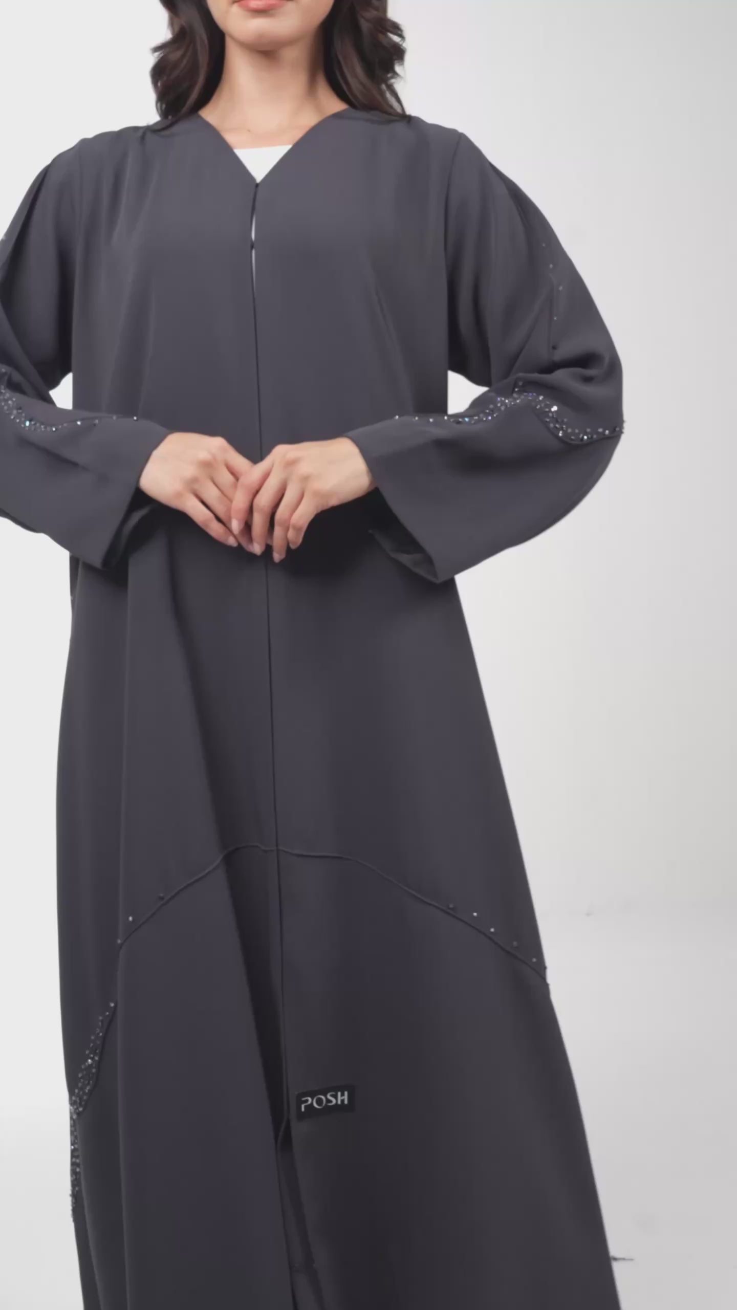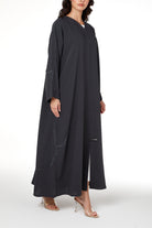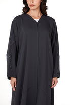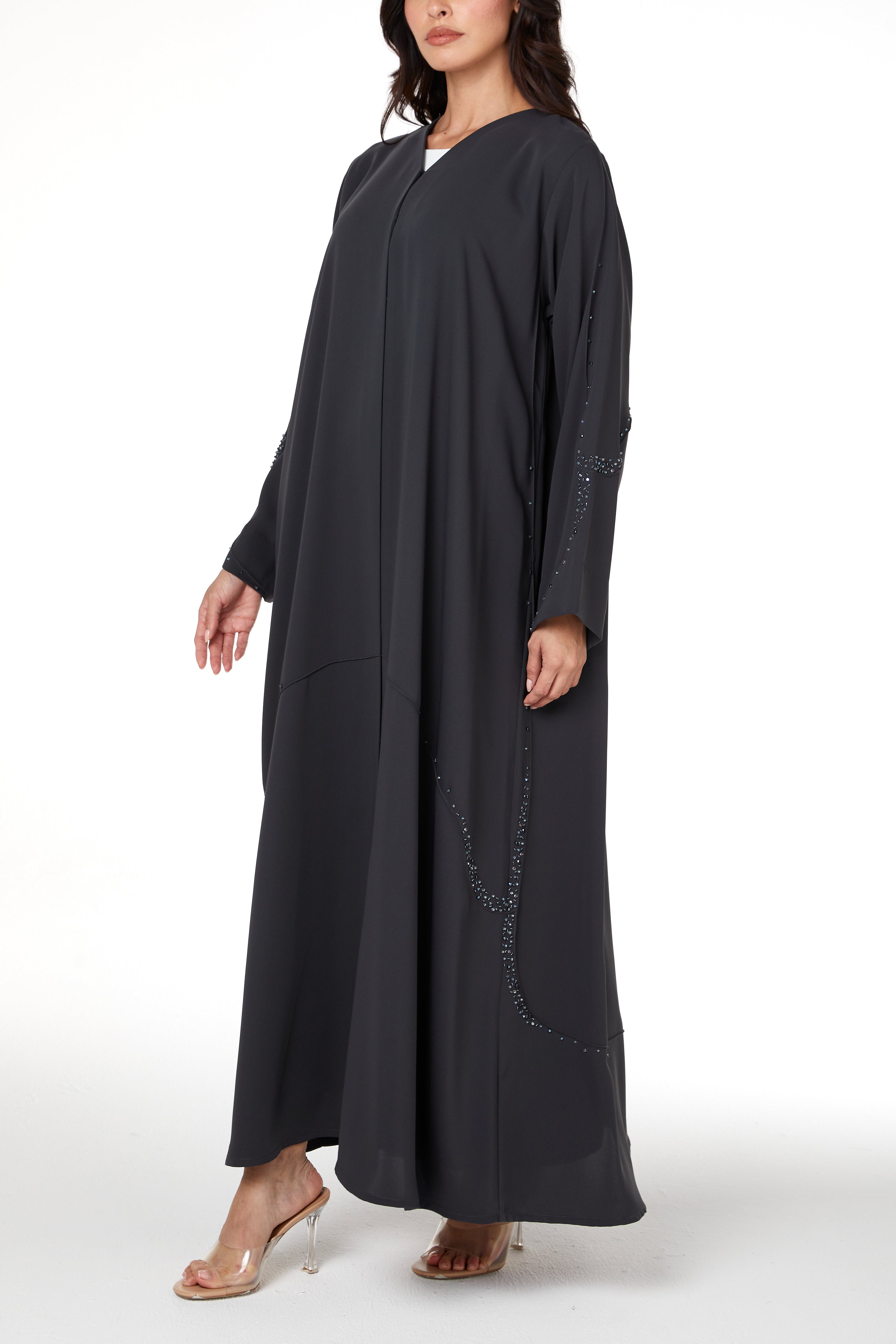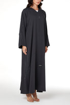 Grey Zoe Crepe Abaya with Beaded Curve Detail