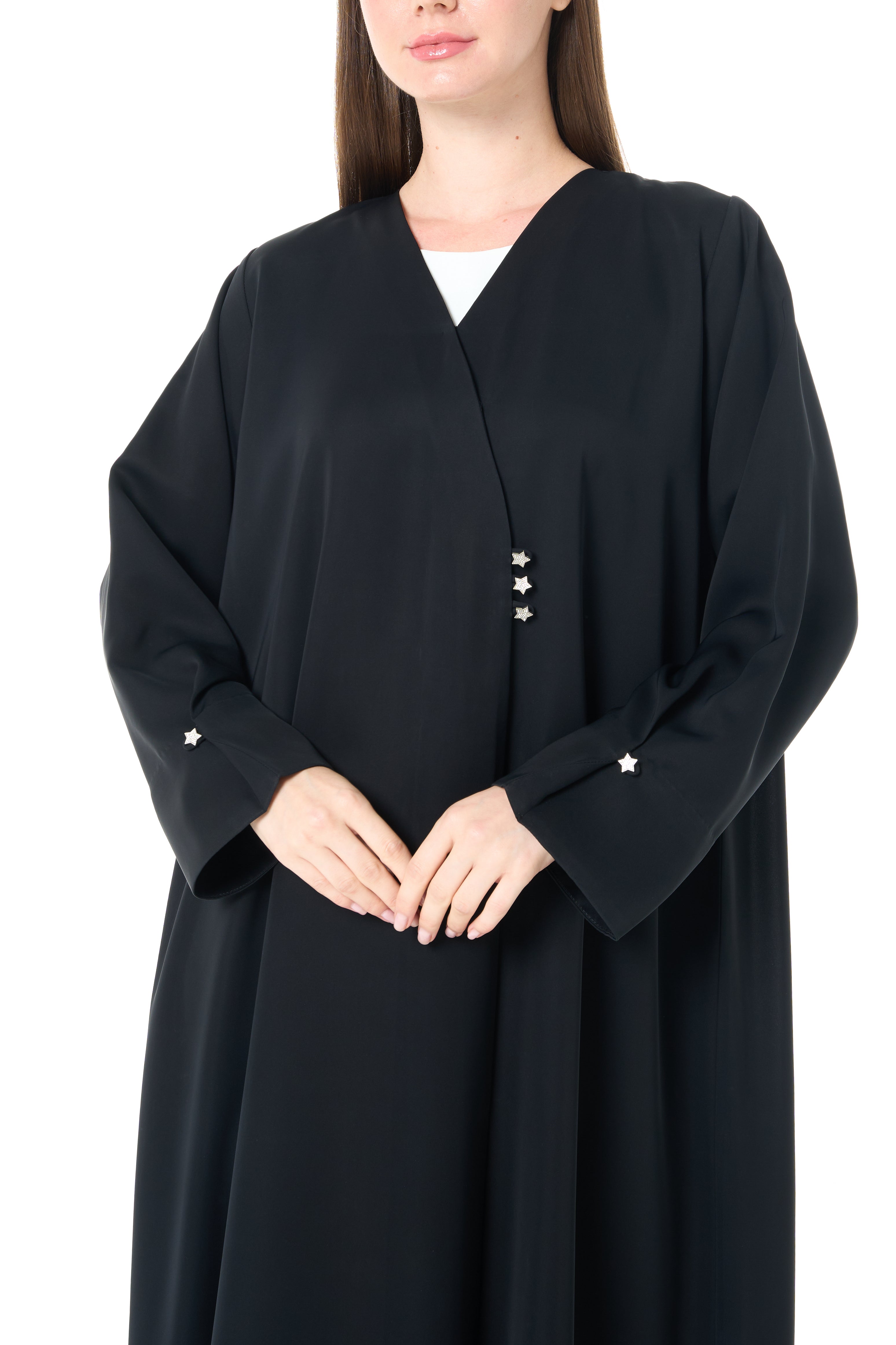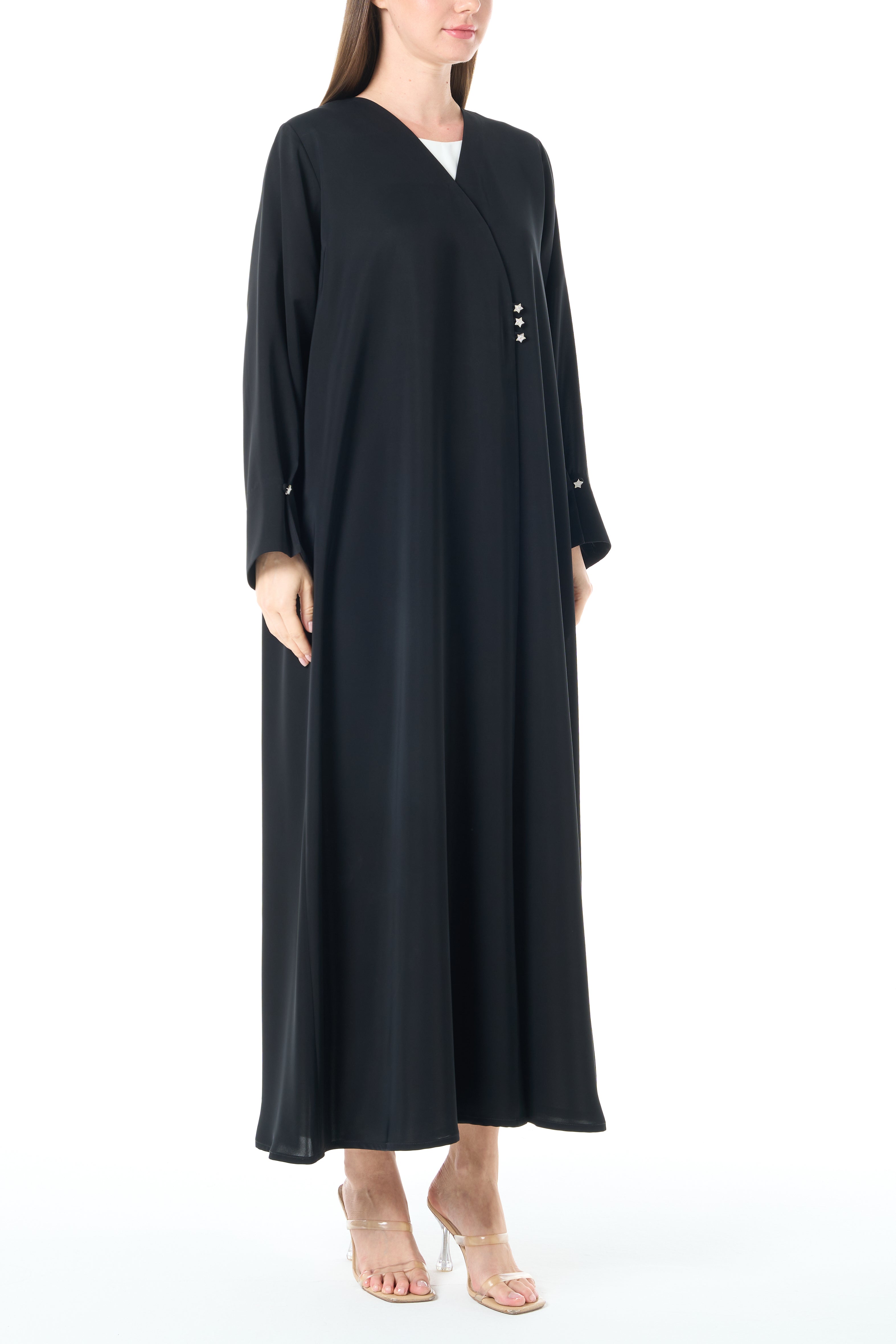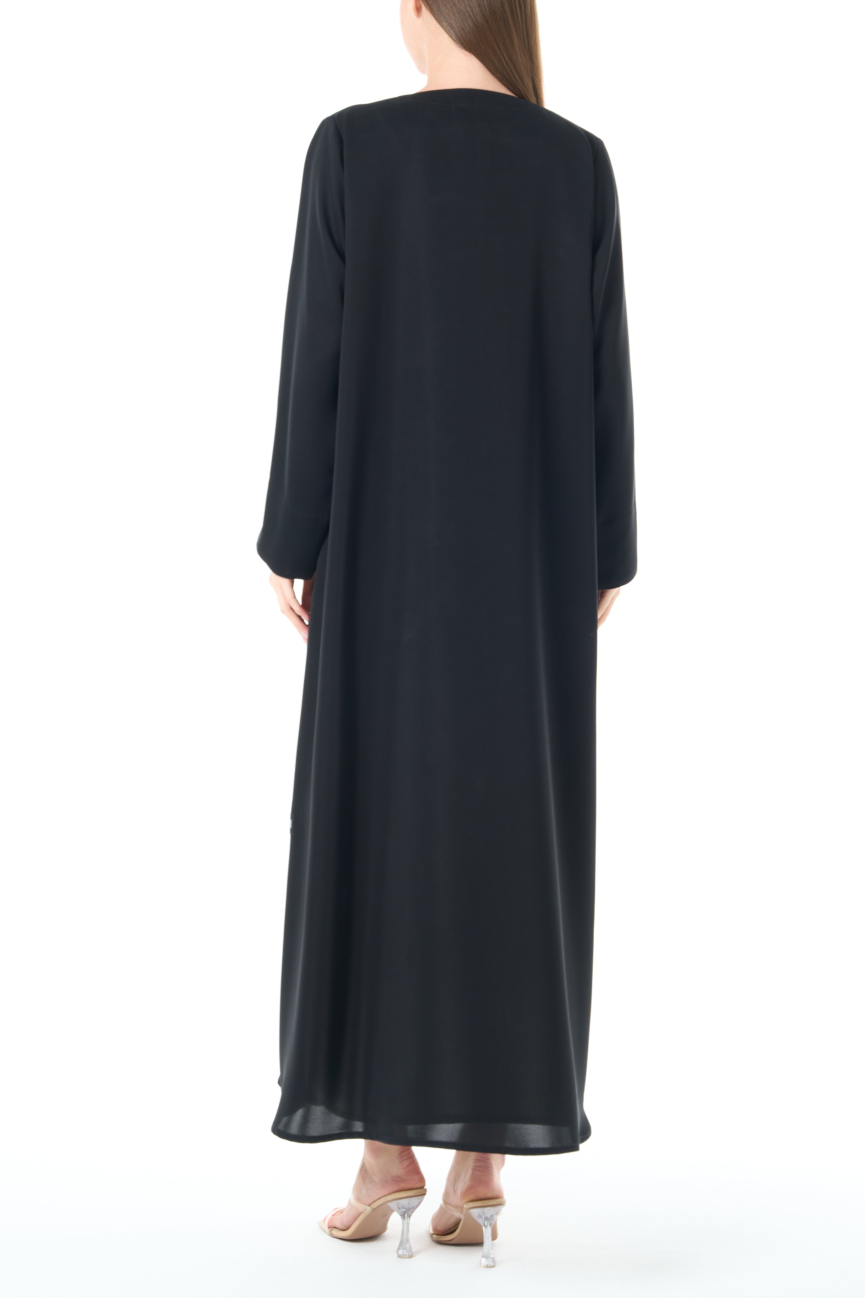 Jet Black Reem Nada Abaya with Clean Minimal Finish