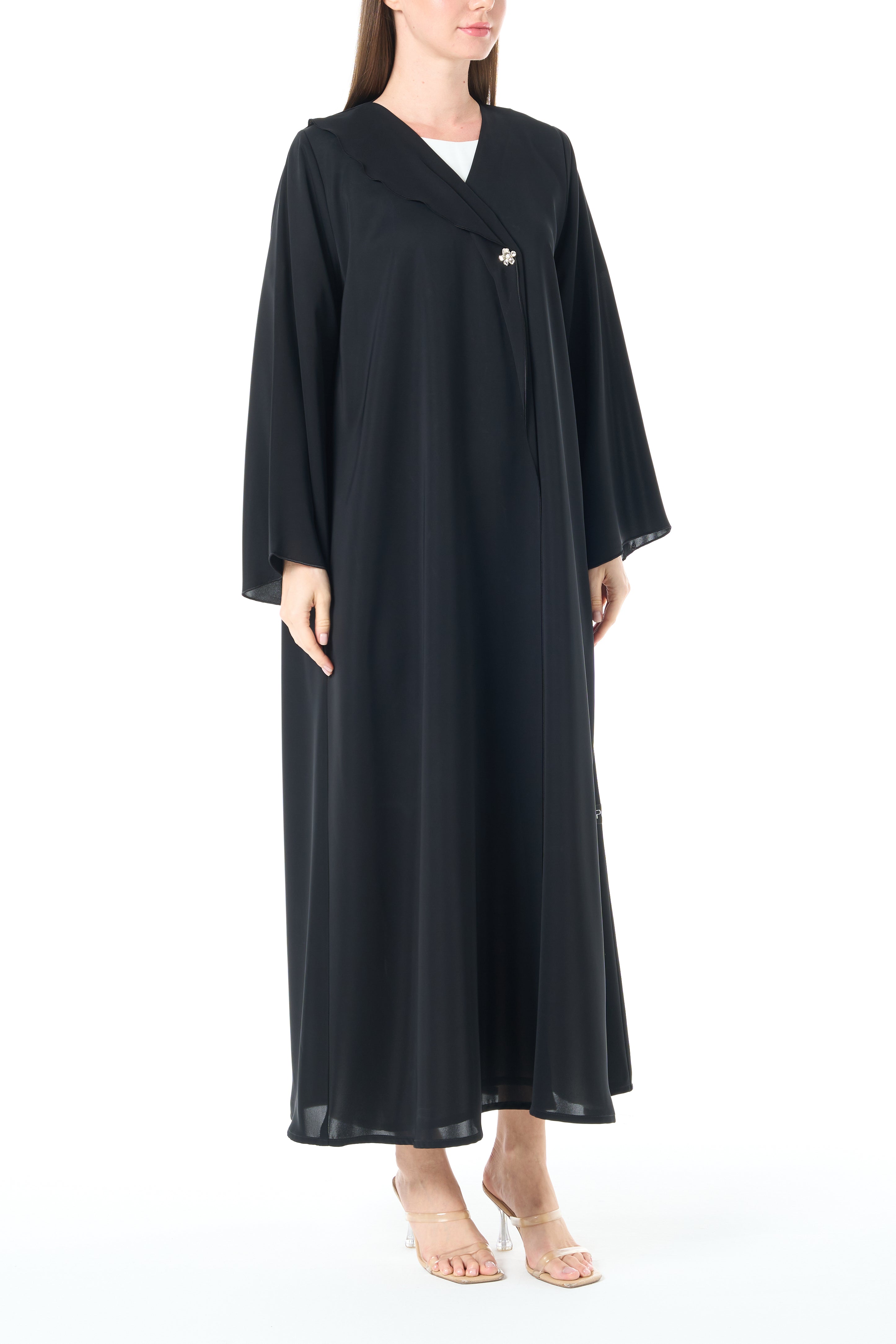 This design follows a clean, embellishment-free approach, highlighting fabric quality and structure. It suits women who appreciate understated luxury in a timeless form. Comes with a matching sheila in plain rolled hem.