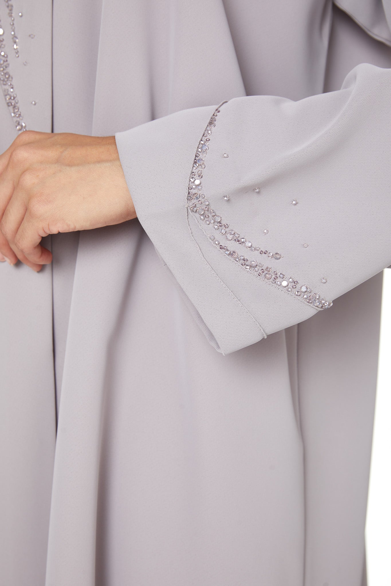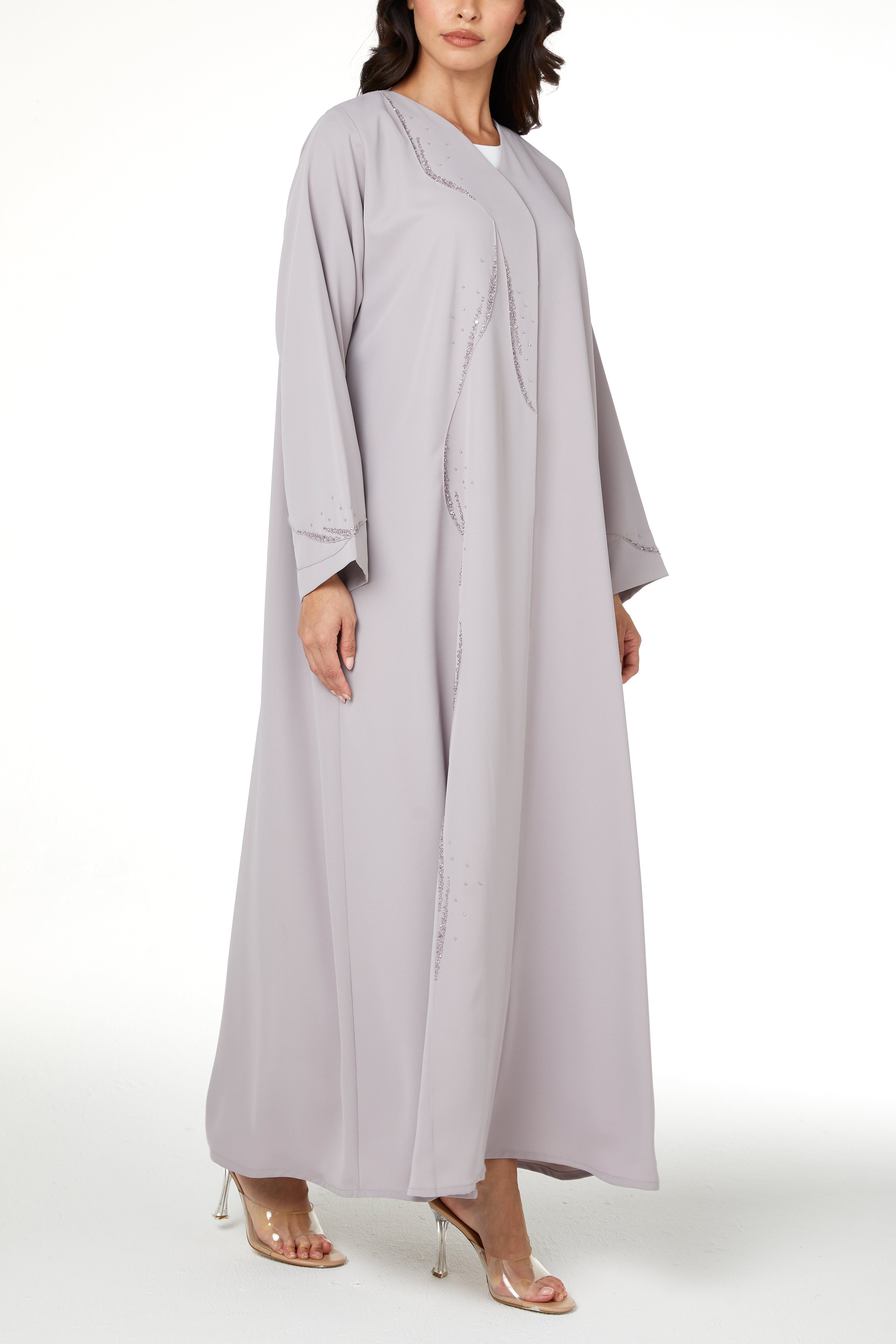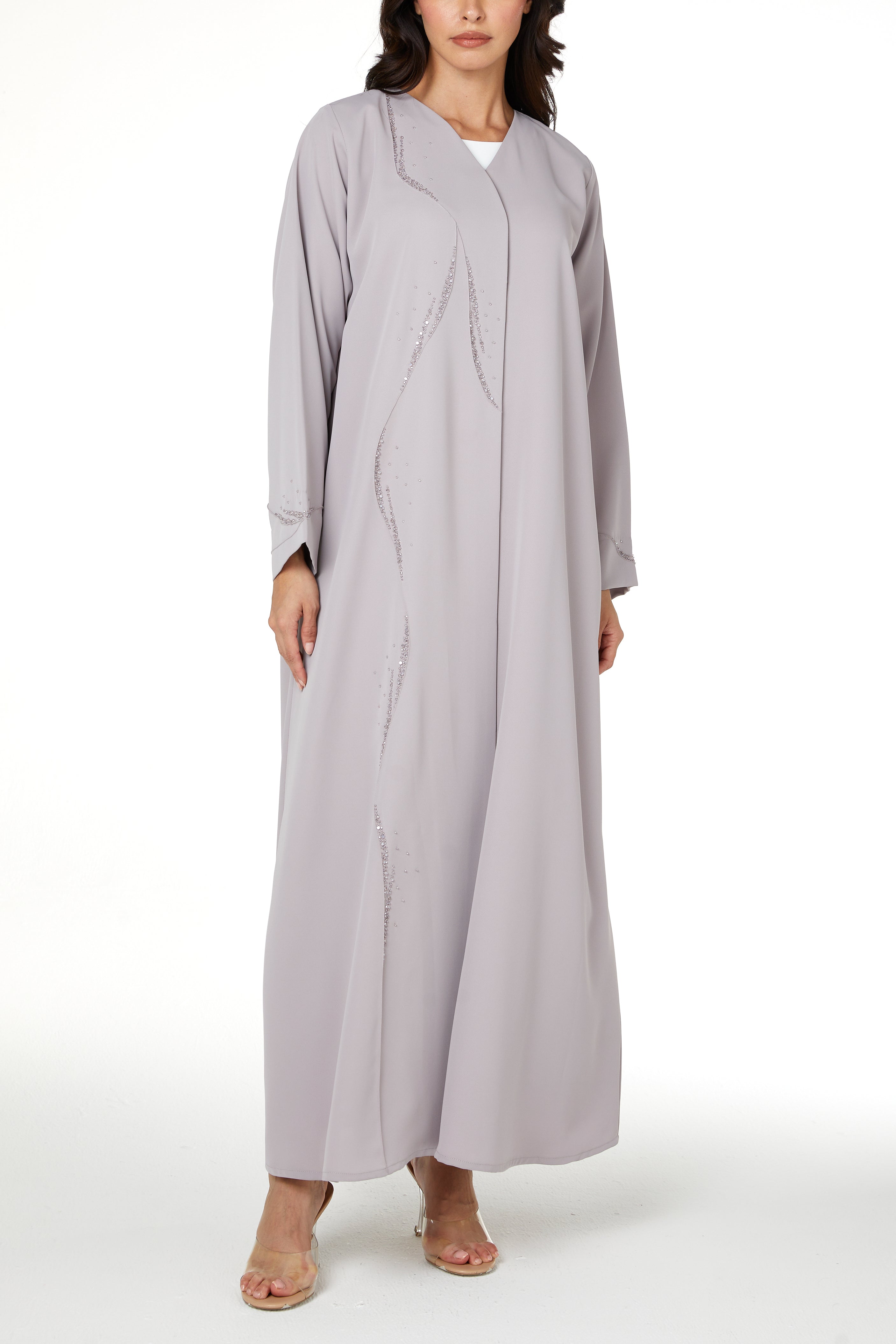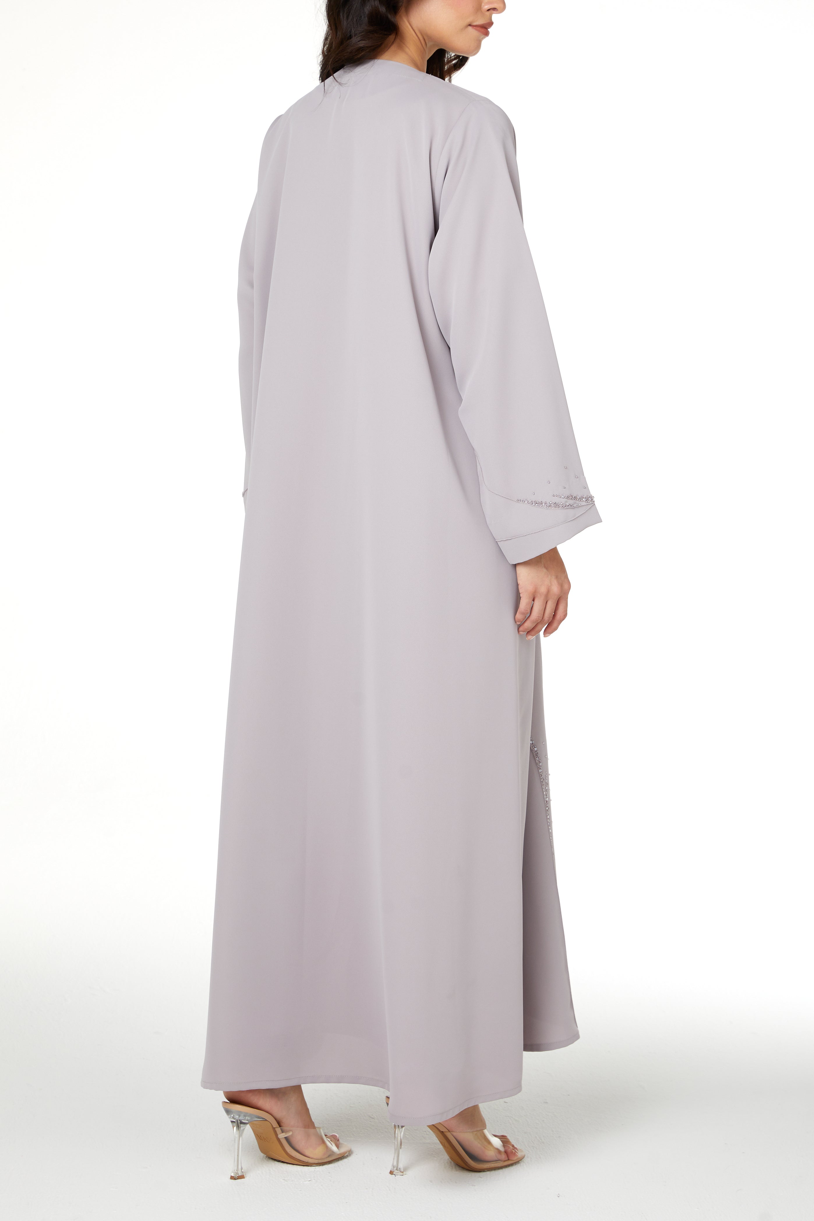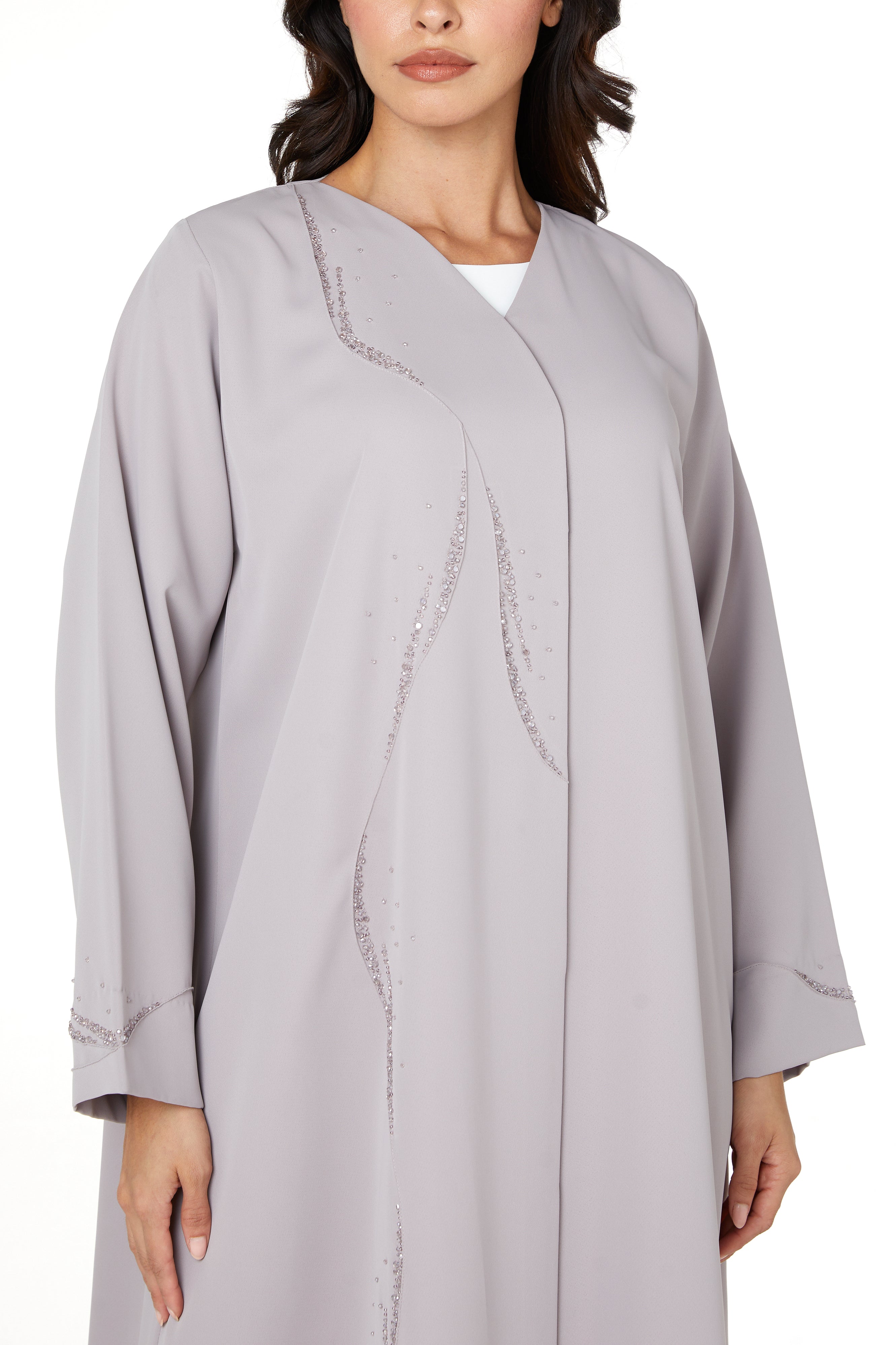 Suitable for fall and winter while remaining wearable throughout the year, this abaya is ideal for customers who appreciate refined handwork combined with comfort and clean design.